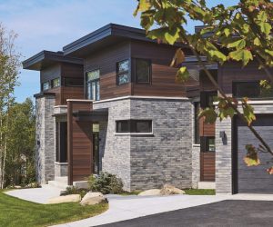 In this project, the stone-and-brick pairing used integrates seamlessly with the outdoor layout. Durable materials that are easy to maintain contribute to a facade designed to withstand Canada’s weather conditions year after year.