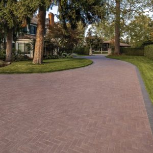 Les couleurs des dalles ont été choisies pour s’harmoniser avec la brique de la maison. Le pavage sert ainsi de lien visuel entre l’architecture et l’aménagement extérieur.